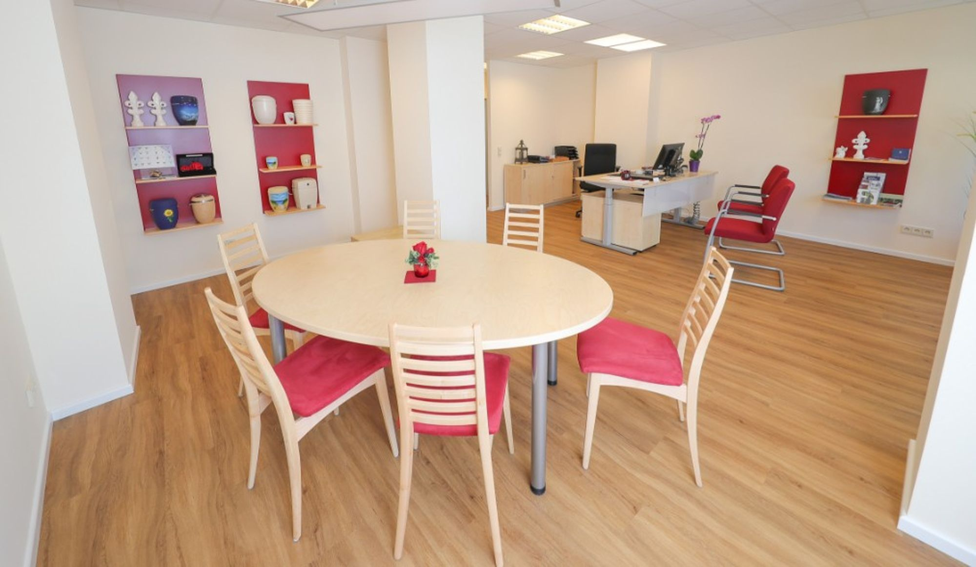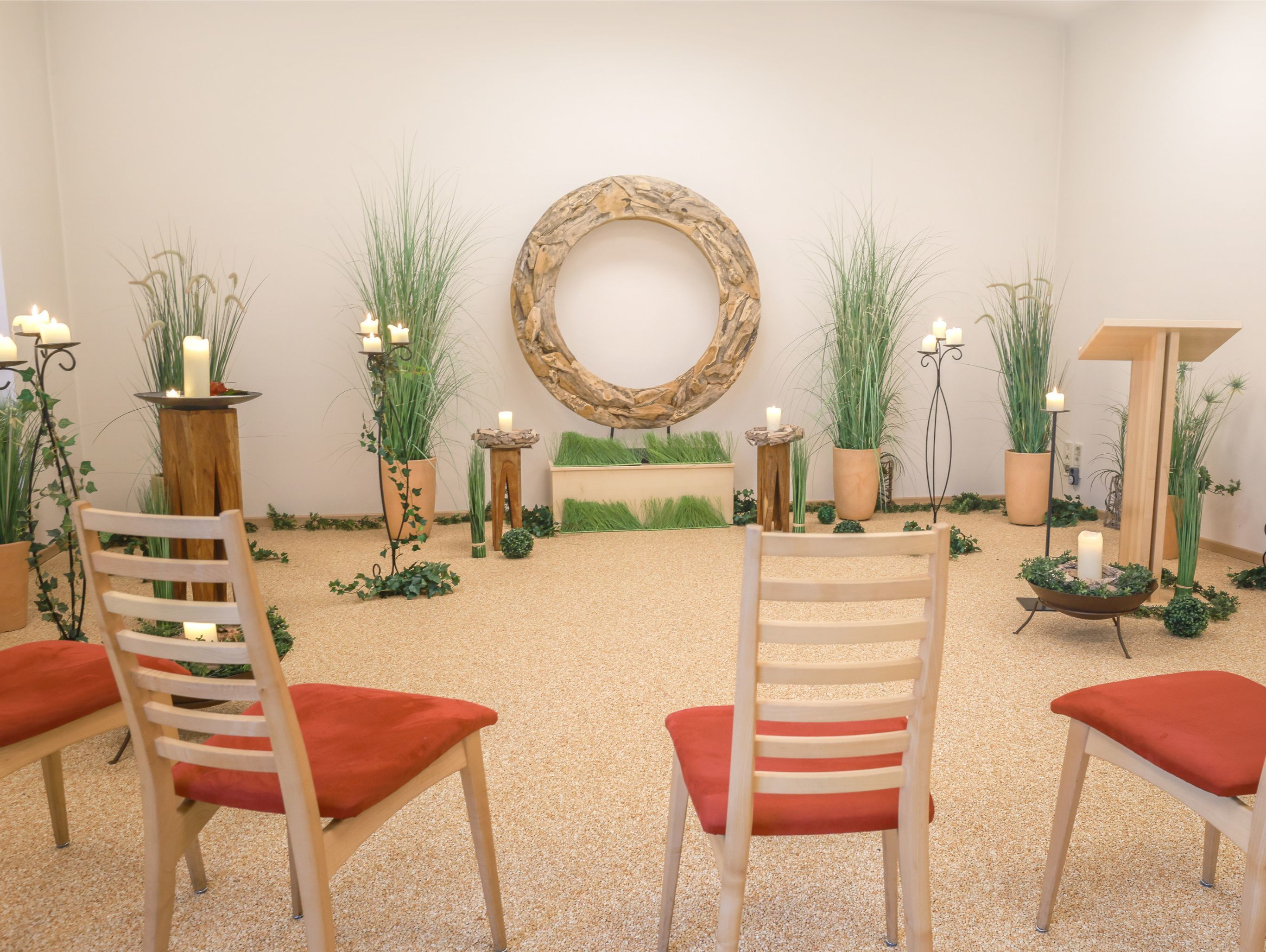In unserem modern gestalteten Bestattungshaus in Uetersen bieten wir Ihnen einen hellen, barrierearmen Abschiedsraum für bis zu 30 Personen. Unter einem sanft leuchtenden Sternenhimmel und in warmer Atmosphäre können Sie hier ungestört und individuell Abschied nehmen. Ausreichend Parkplätze und klimatisierte Räumlichkeiten sorgen dafür, dass Sie sich voll und ganz auf Ihre Gefühle und Rituale konzentrieren können.