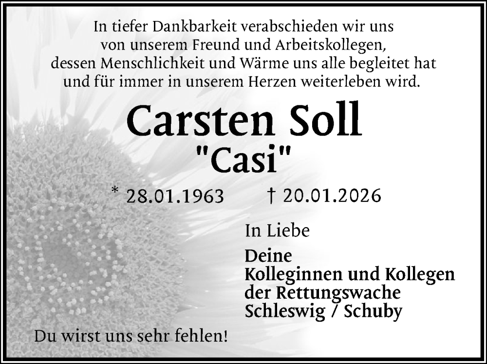 Hier finden Sie alle Traueranzeigen aus der Zeitung, die bisher für Carsten Soll erschienen sind. Weitere Traueranzeigen, die in der Zeitung erscheinen, werden hier ebenfalls aufgelistet