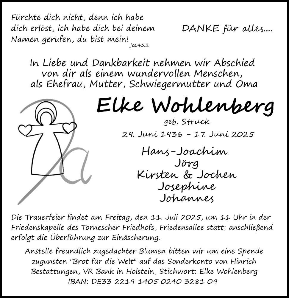 Hier finden Sie alle Traueranzeigen aus der Zeitung, die bisher für Elke Wohlenberg erschienen sind. Weitere Traueranzeigen, die in der Zeitung erscheinen, werden hier ebenfalls aufgelistet