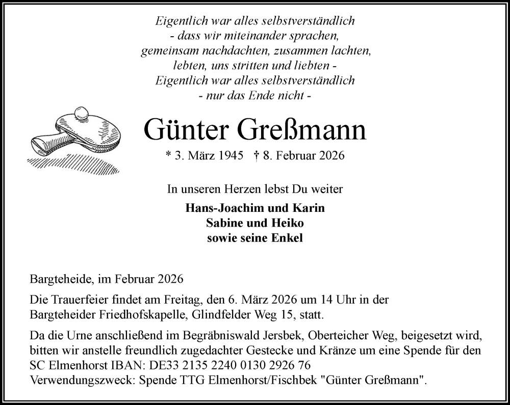 Hier finden Sie alle Traueranzeigen aus der Zeitung, die bisher für Günter Greßmann erschienen sind. Weitere Traueranzeigen, die in der Zeitung erscheinen, werden hier ebenfalls aufgelistet