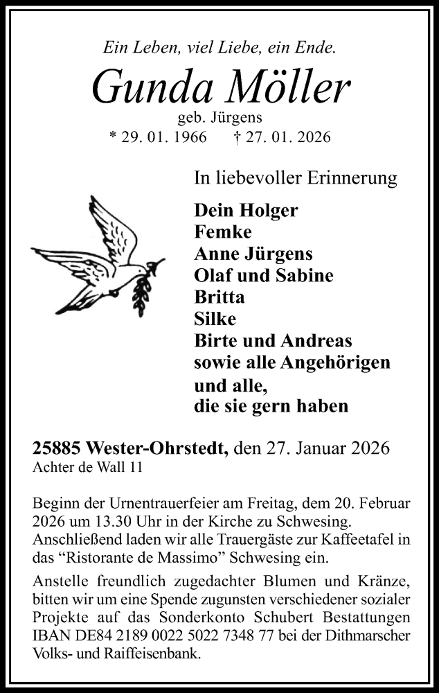 Hier finden Sie alle Traueranzeigen aus der Zeitung, die bisher für Gunda Möller erschienen sind. Weitere Traueranzeigen, die in der Zeitung erscheinen, werden hier ebenfalls aufgelistet