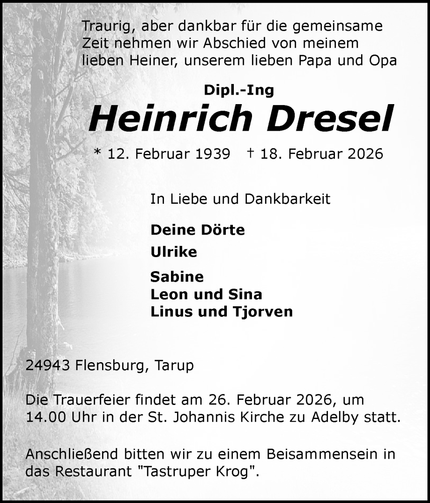 Hier finden Sie alle Traueranzeigen aus der Zeitung, die bisher für Heinrich Dresel erschienen sind. Weitere Traueranzeigen, die in der Zeitung erscheinen, werden hier ebenfalls aufgelistet