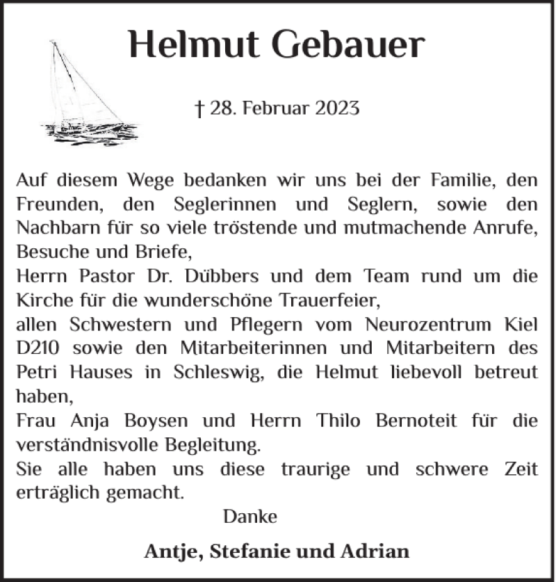 Hier finden Sie alle Traueranzeigen aus der Zeitung, die bisher für Helmut Gebauer erschienen sind. Weitere Traueranzeigen, die in der Zeitung erscheinen, werden hier ebenfalls aufgelistet