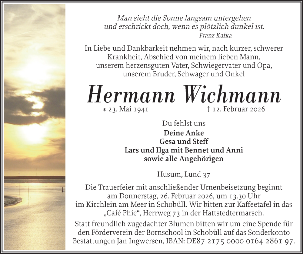 Hier finden Sie alle Traueranzeigen aus der Zeitung, die bisher für Hermann Wichmann erschienen sind. Weitere Traueranzeigen, die in der Zeitung erscheinen, werden hier ebenfalls aufgelistet