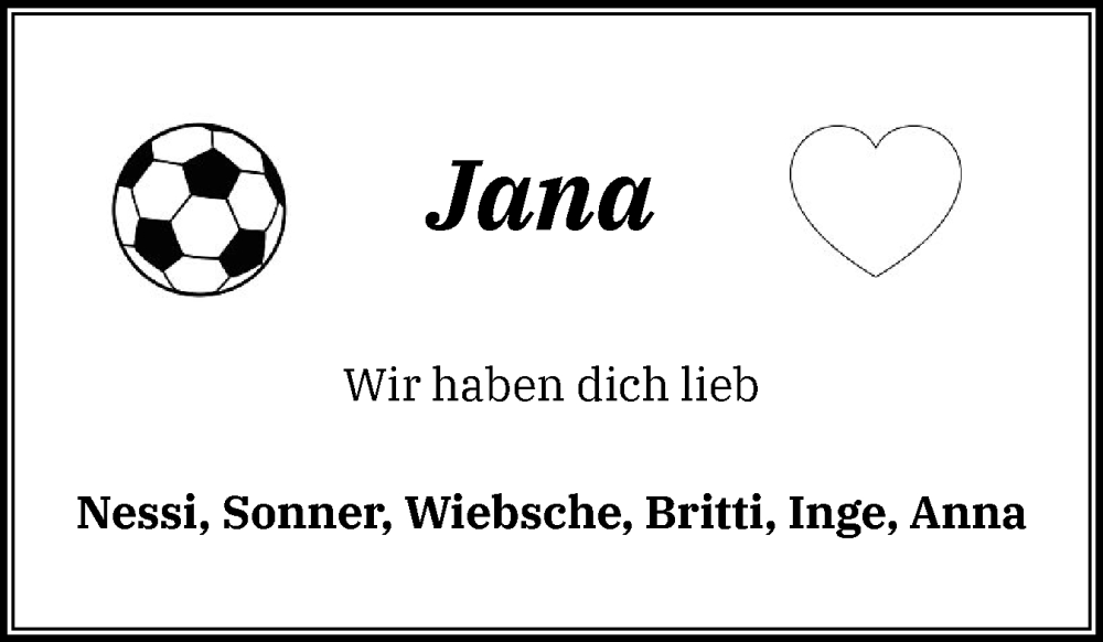 Hier finden Sie alle Traueranzeigen aus der Zeitung, die bisher für Jana erschienen sind. Weitere Traueranzeigen, die in der Zeitung erscheinen, werden hier ebenfalls aufgelistet