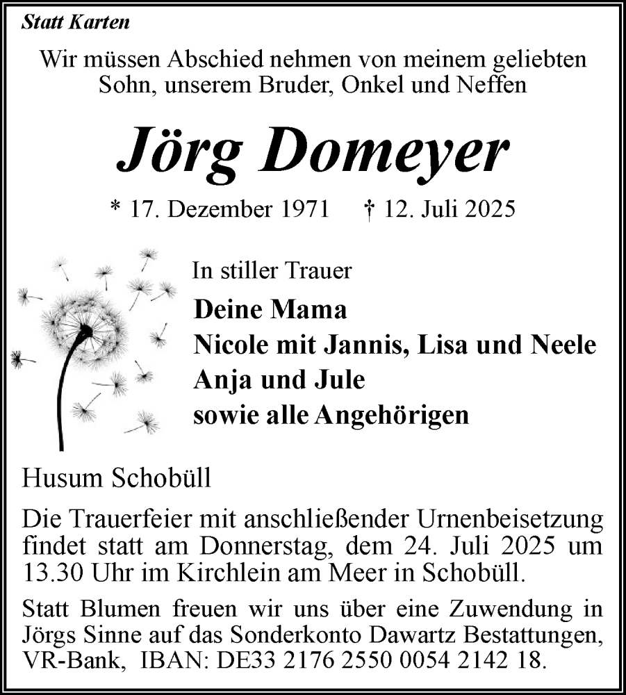 Hier finden Sie alle Traueranzeigen aus der Zeitung, die bisher für Jörg Domeyer erschienen sind. Weitere Traueranzeigen, die in der Zeitung erscheinen, werden hier ebenfalls aufgelistet