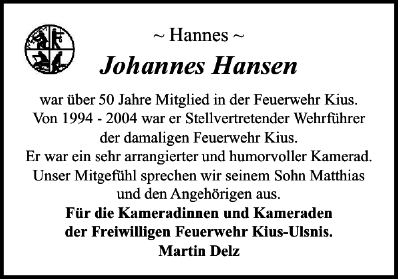 Hier finden Sie alle Traueranzeigen aus der Zeitung, die bisher für Johannes Hansen erschienen sind. Weitere Traueranzeigen, die in der Zeitung erscheinen, werden hier ebenfalls aufgelistet
