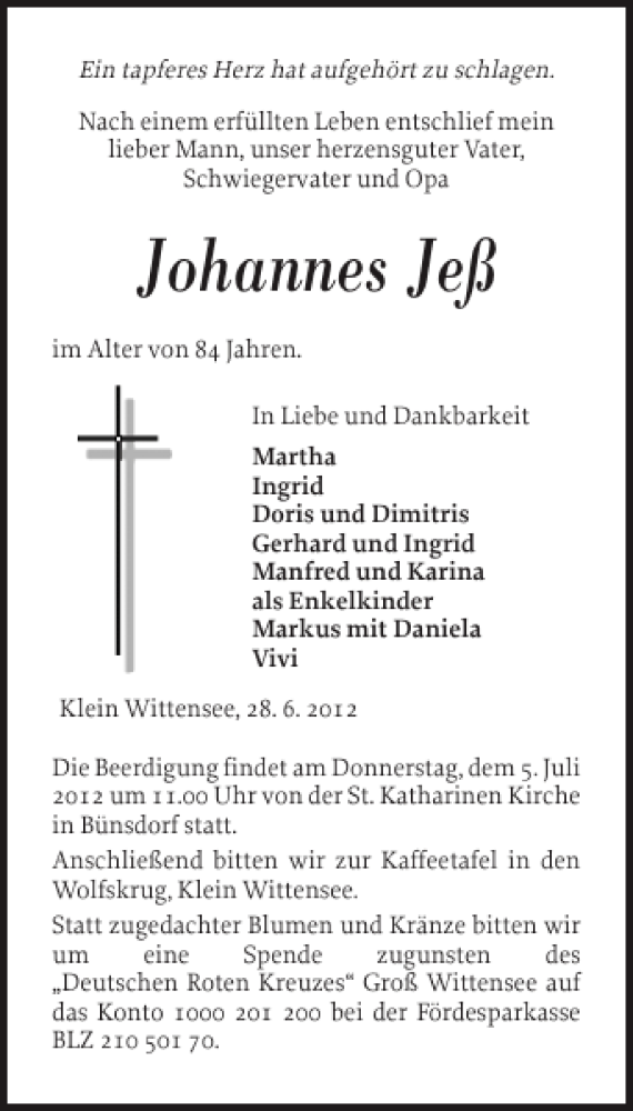 Hier finden Sie alle Traueranzeigen aus der Zeitung, die bisher für Johannes Jeß erschienen sind. Weitere Traueranzeigen, die in der Zeitung erscheinen, werden hier ebenfalls aufgelistet