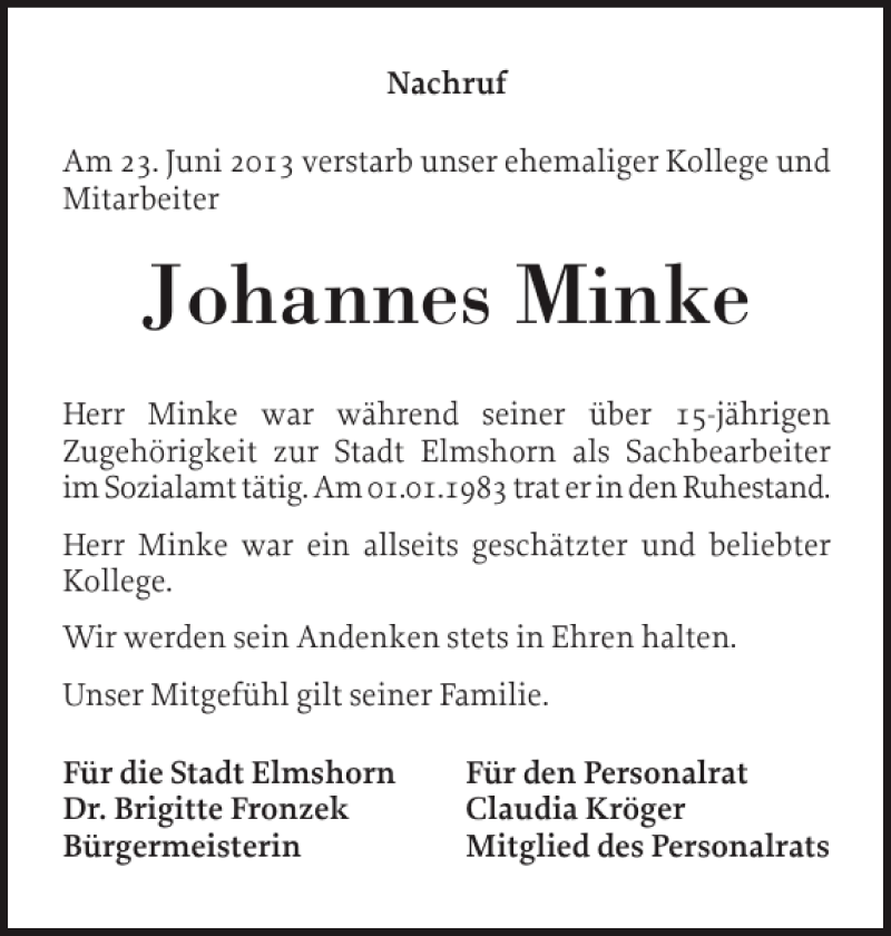 Hier finden Sie alle Traueranzeigen aus der Zeitung, die bisher für Johannes Minke erschienen sind. Weitere Traueranzeigen, die in der Zeitung erscheinen, werden hier ebenfalls aufgelistet
