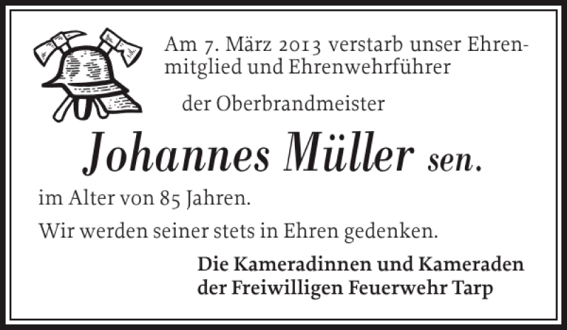 Hier finden Sie alle Traueranzeigen aus der Zeitung, die bisher für Johannes Müller erschienen sind. Weitere Traueranzeigen, die in der Zeitung erscheinen, werden hier ebenfalls aufgelistet