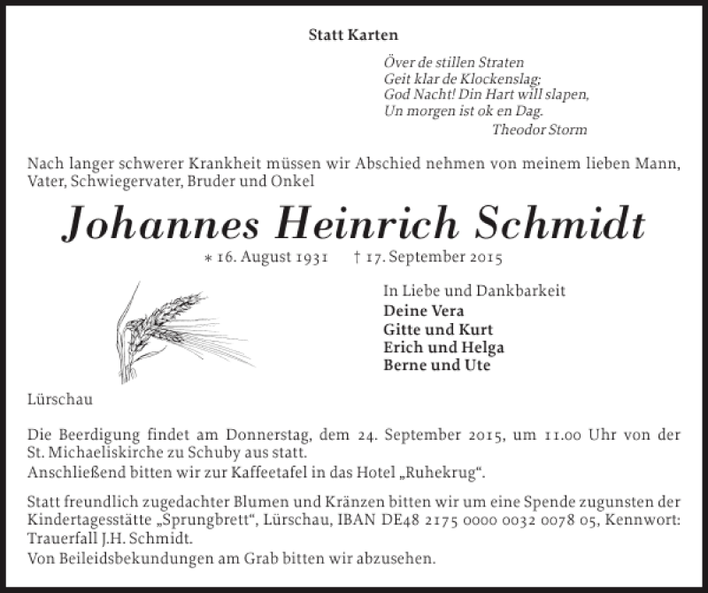Hier finden Sie alle Traueranzeigen aus der Zeitung, die bisher für Johannes Heinrich Schmidt erschienen sind. Weitere Traueranzeigen, die in der Zeitung erscheinen, werden hier ebenfalls aufgelistet