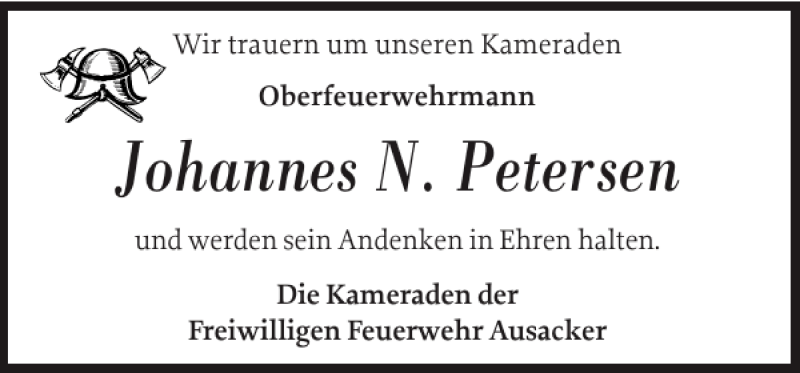 Hier finden Sie alle Traueranzeigen aus der Zeitung, die bisher für Johannes N. Petersen erschienen sind. Weitere Traueranzeigen, die in der Zeitung erscheinen, werden hier ebenfalls aufgelistet
