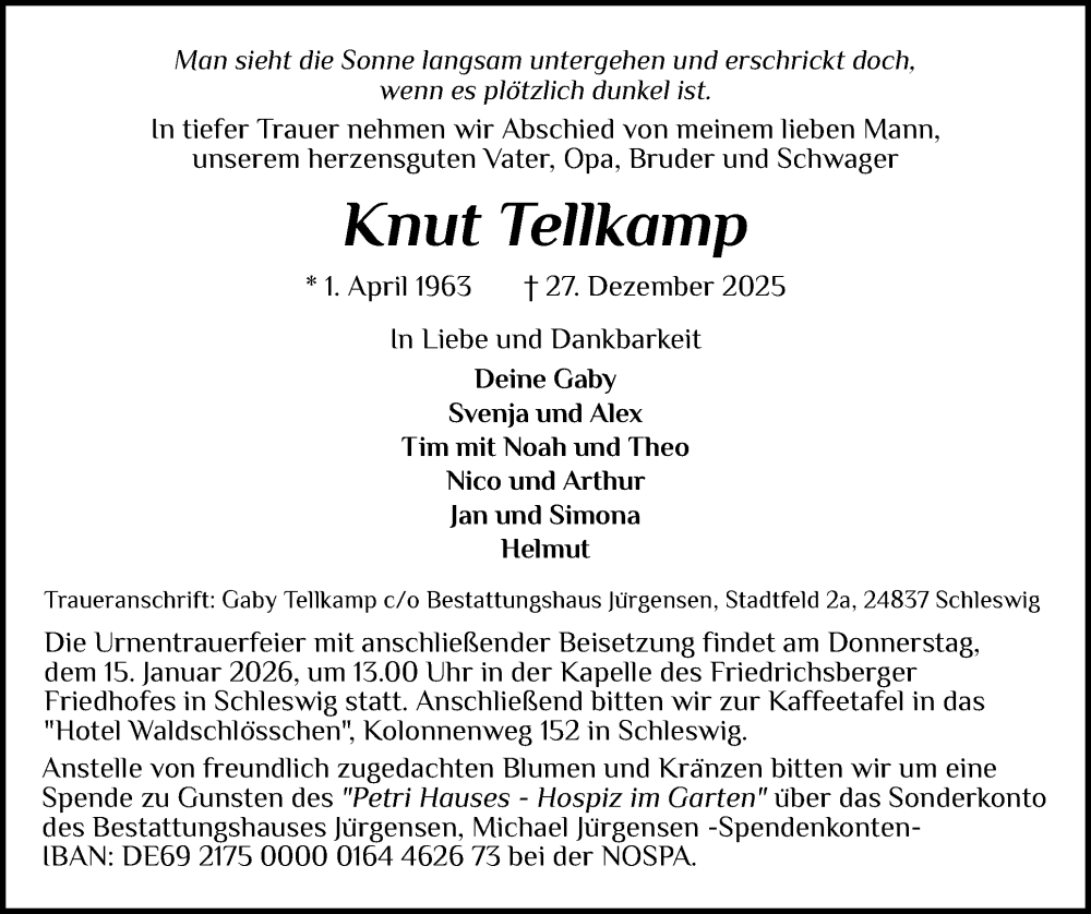 Hier finden Sie alle Traueranzeigen aus der Zeitung, die bisher für Knut Tellkamp erschienen sind. Weitere Traueranzeigen, die in der Zeitung erscheinen, werden hier ebenfalls aufgelistet