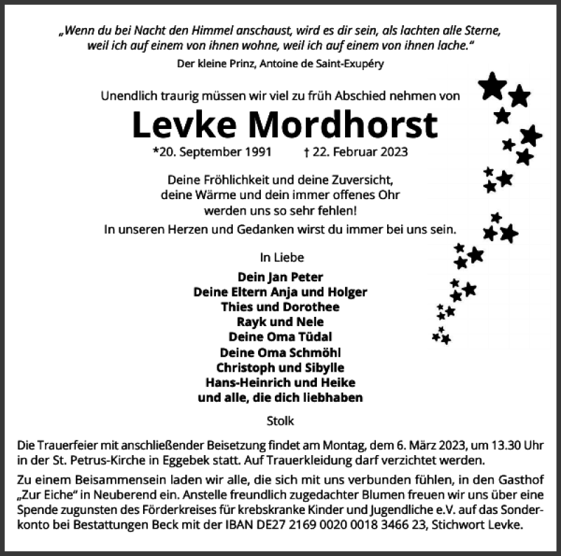 Hier finden Sie alle Traueranzeigen aus der Zeitung, die bisher für Levke Mordhorst erschienen sind. Weitere Traueranzeigen, die in der Zeitung erscheinen, werden hier ebenfalls aufgelistet
