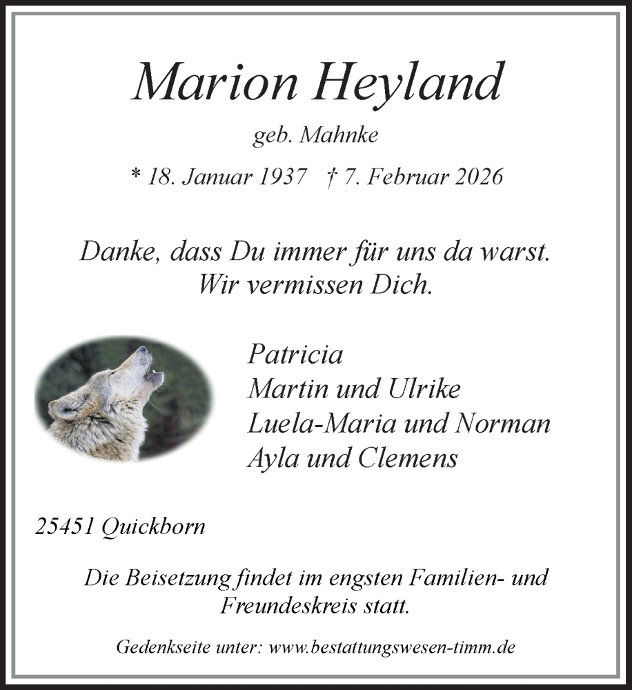 Hier finden Sie alle Traueranzeigen aus der Zeitung, die bisher für Marion Heyland erschienen sind. Weitere Traueranzeigen, die in der Zeitung erscheinen, werden hier ebenfalls aufgelistet