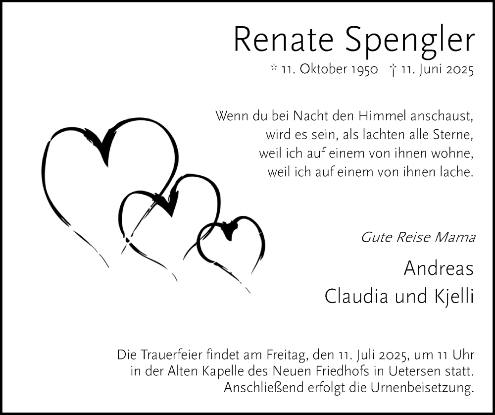 Hier finden Sie alle Traueranzeigen aus der Zeitung, die bisher für Renate Spengler erschienen sind. Weitere Traueranzeigen, die in der Zeitung erscheinen, werden hier ebenfalls aufgelistet