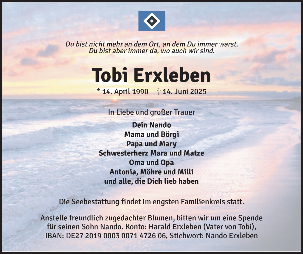 Hier finden Sie alle Traueranzeigen aus der Zeitung, die bisher für Tobi Erxleben erschienen sind. Weitere Traueranzeigen, die in der Zeitung erscheinen, werden hier ebenfalls aufgelistet