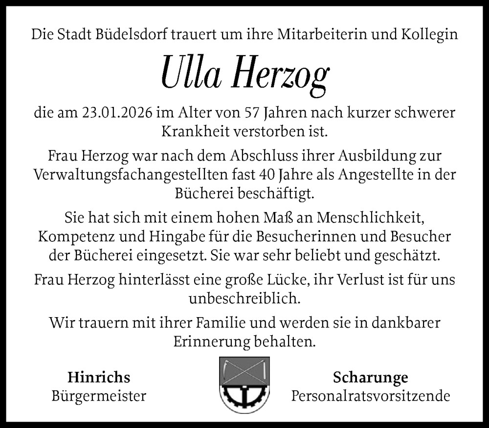 Hier finden Sie alle Traueranzeigen aus der Zeitung, die bisher für Ulla Herzog erschienen sind. Weitere Traueranzeigen, die in der Zeitung erscheinen, werden hier ebenfalls aufgelistet