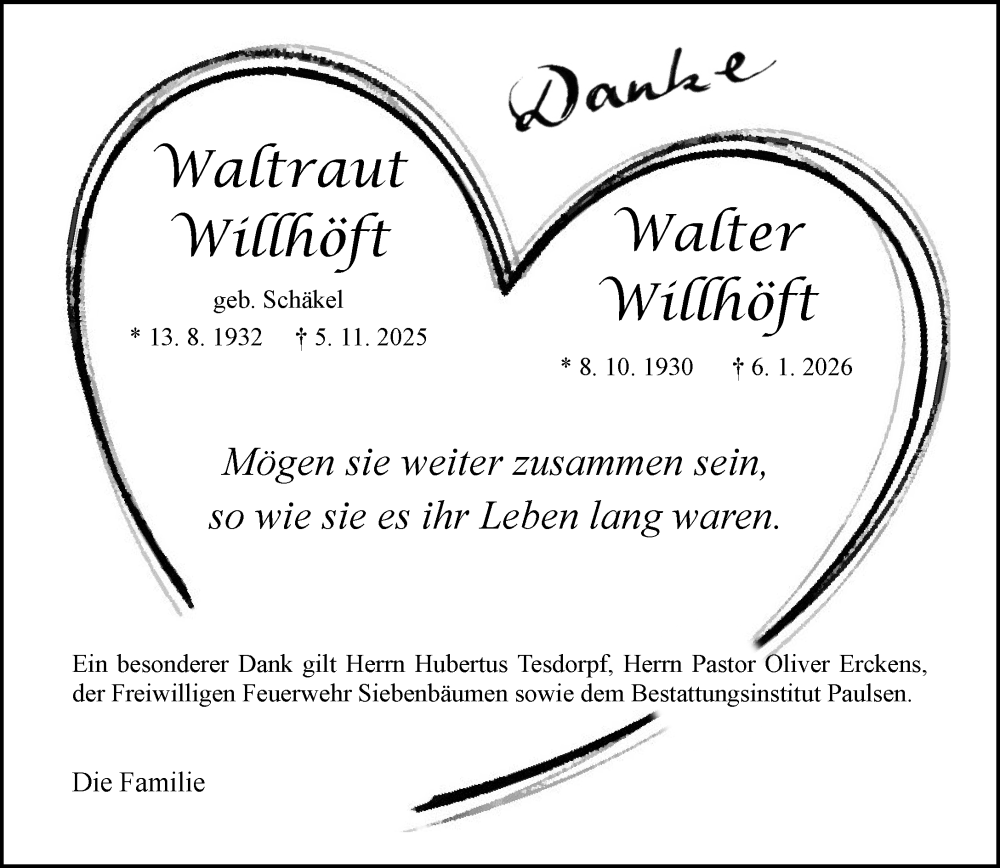 Hier finden Sie alle Traueranzeigen aus der Zeitung, die bisher für Waltraut Willhöft erschienen sind. Weitere Traueranzeigen, die in der Zeitung erscheinen, werden hier ebenfalls aufgelistet